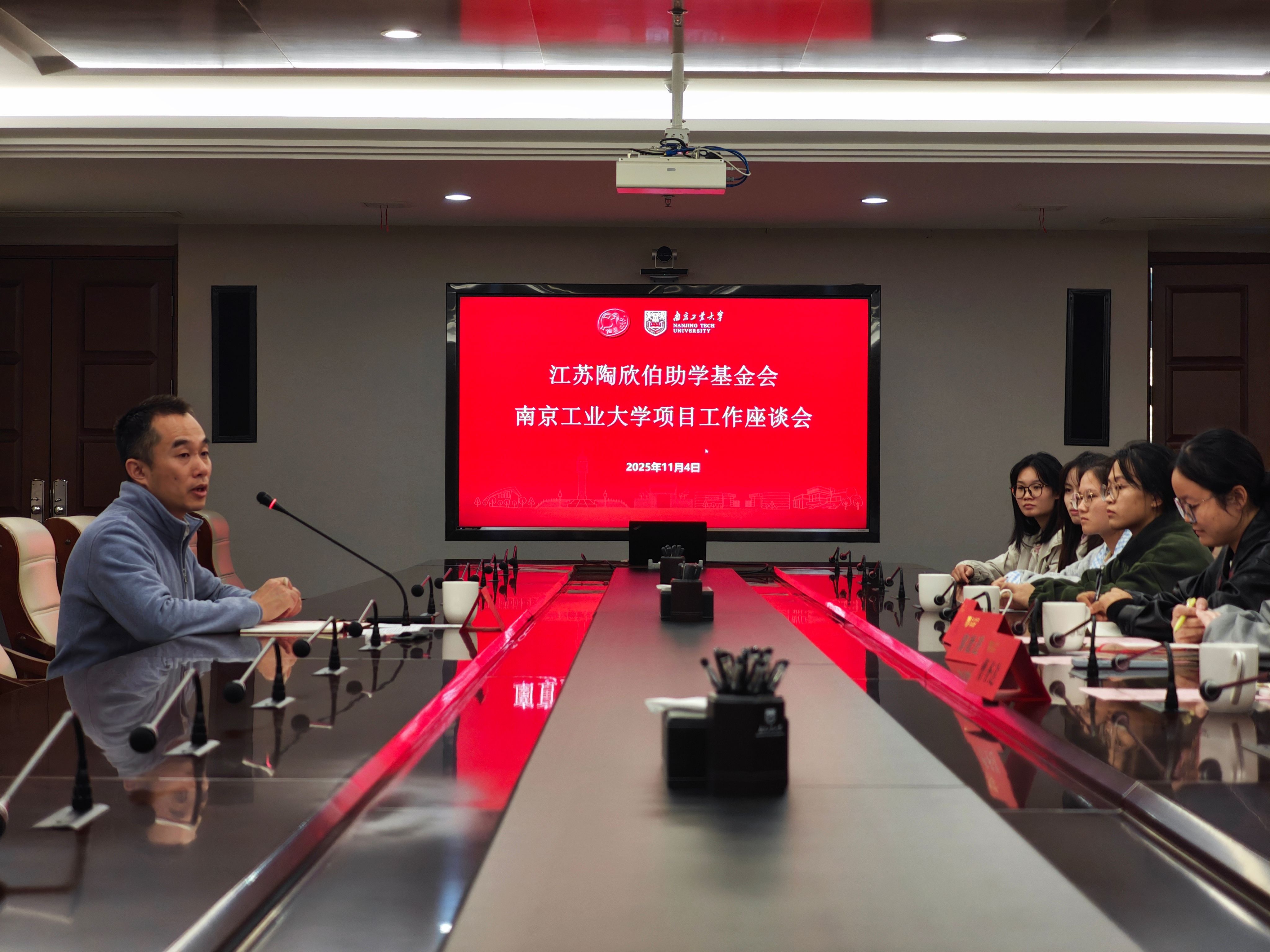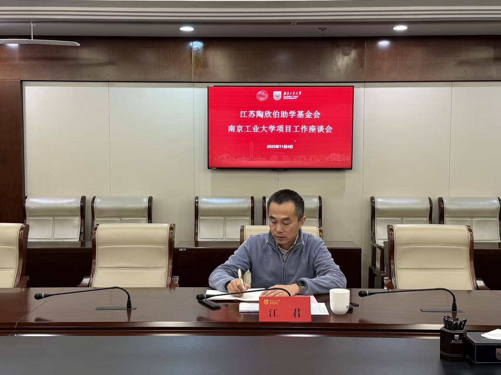 11月4日下午,2025年度江苏陶欣伯助学基金会—南京工业大学项目工作座谈会在江浦校区弘毅楼三楼会议室举行。江苏陶欣伯助学基金会秘书长江君参加座谈会。